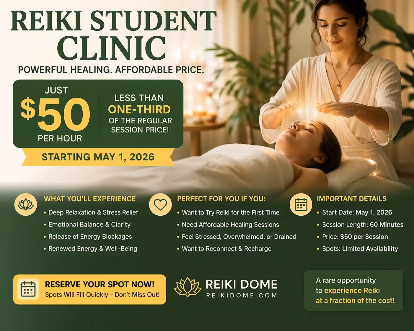 Starting May 1, 2026, Reiki Dome is opening a Reiki Student Clinic with a simple mission: